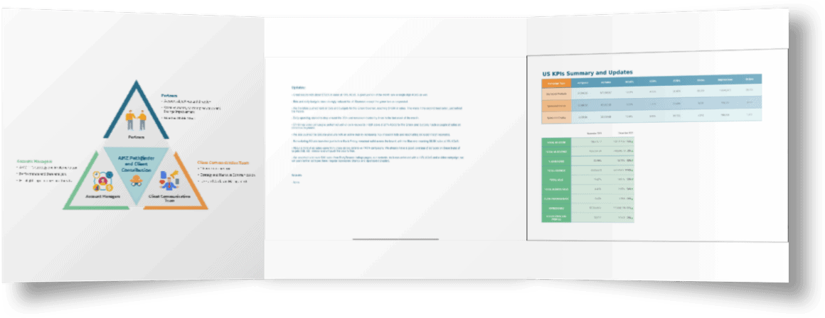 Our scheduled client calls happen once a month, very occasionally twice a month. Why is this? We are firm believers that data speaks the loudest. Therefore,, making changes and discussing the outcome too frequently before the data is ripe for interpretation is a mistake. Discussing major results and account direction once a month allows us to have the whole picture. Nevertheless, we often communicate with our clients through slack or email to discuss action points related to the strategic direction we are working towards and keep clients informed between calls.That is not to say we are unreachable before this. Our call agenda follows a rough structure and takes place in the first two weeks of each month (we say rough as clients come in all shapes and sizes. What works for one may not work for another.) During our calls we discuss:- The KPIs and what actions were taken to get there